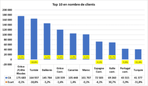 - Une stabilité des destinations favorites du Moyen-Courrier : Grèce, Tunisie, Baléares, Canaries, Maroc